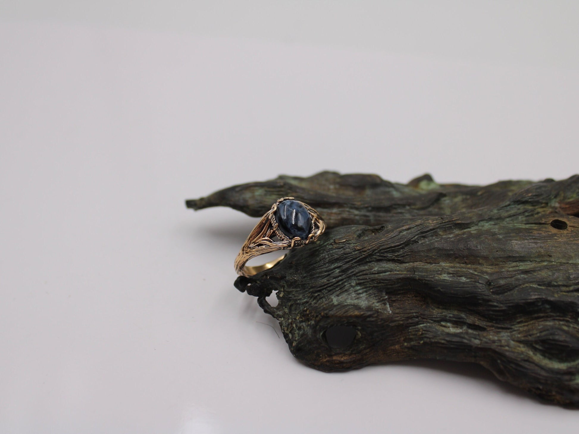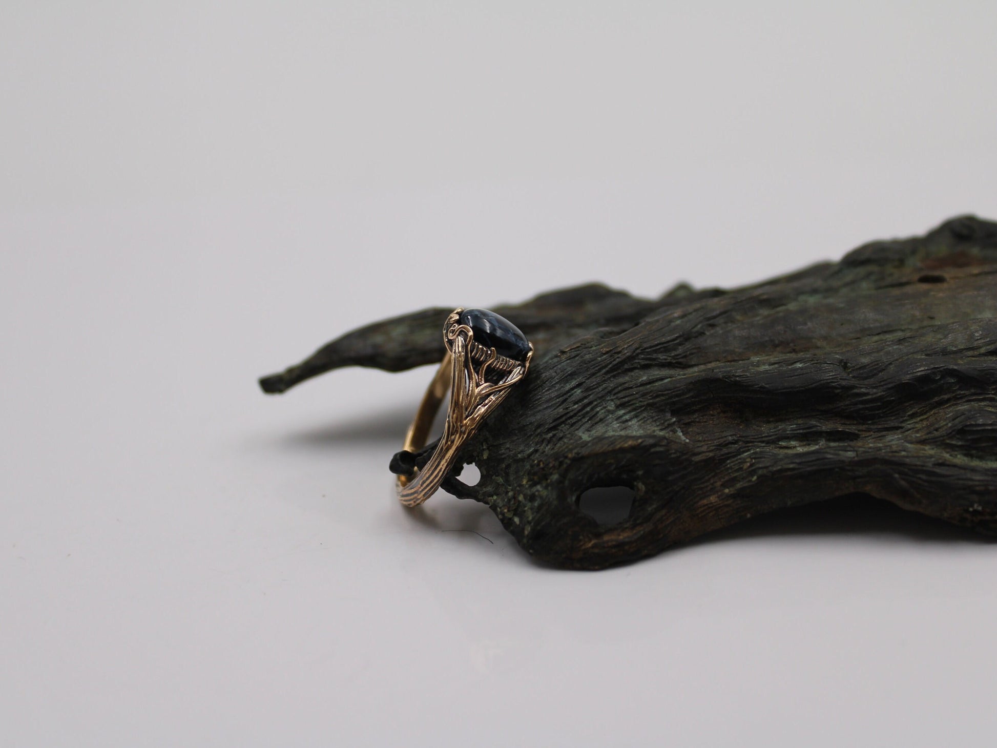 Add a touch of elegance to your jewelry collection with this stunning pietersite vine ring in 14k gold. The rich, intricate colors of the pietersite gemstone pairs beautifully with the warm tones of the gold setting. Inspired by the natural beauty of vines, this ring is perfect for nature lovers and anyone who appreciates intricate details. Whether you're treating yourself or looking for a thoughtful gift, this pietersite vine ring is sure to make a statement. Handcrafted with care and attention to detail, this ring is a timeless piece that you'll cherish for years to come.
