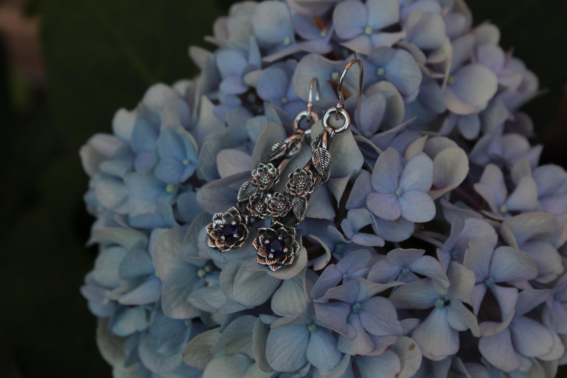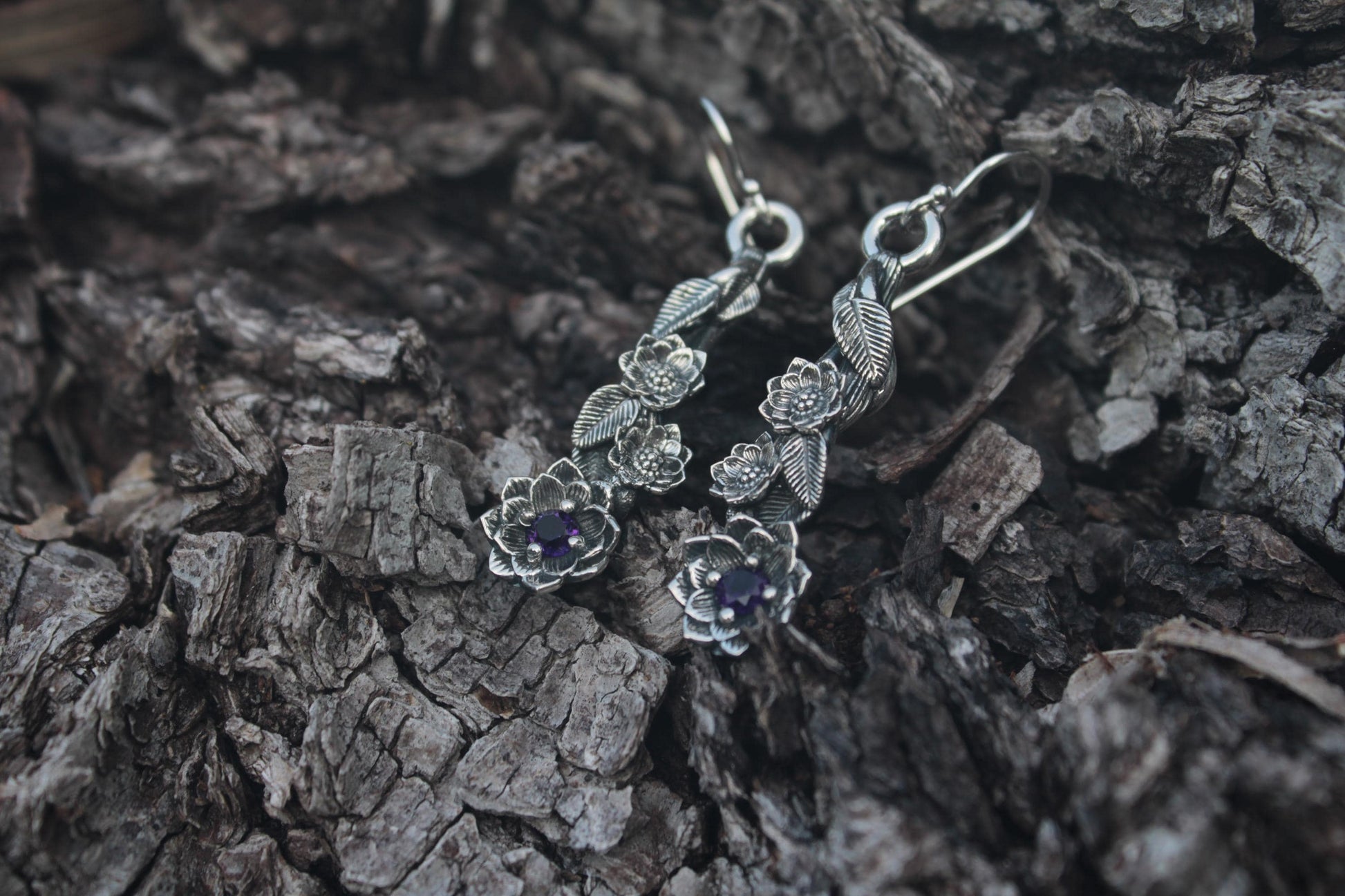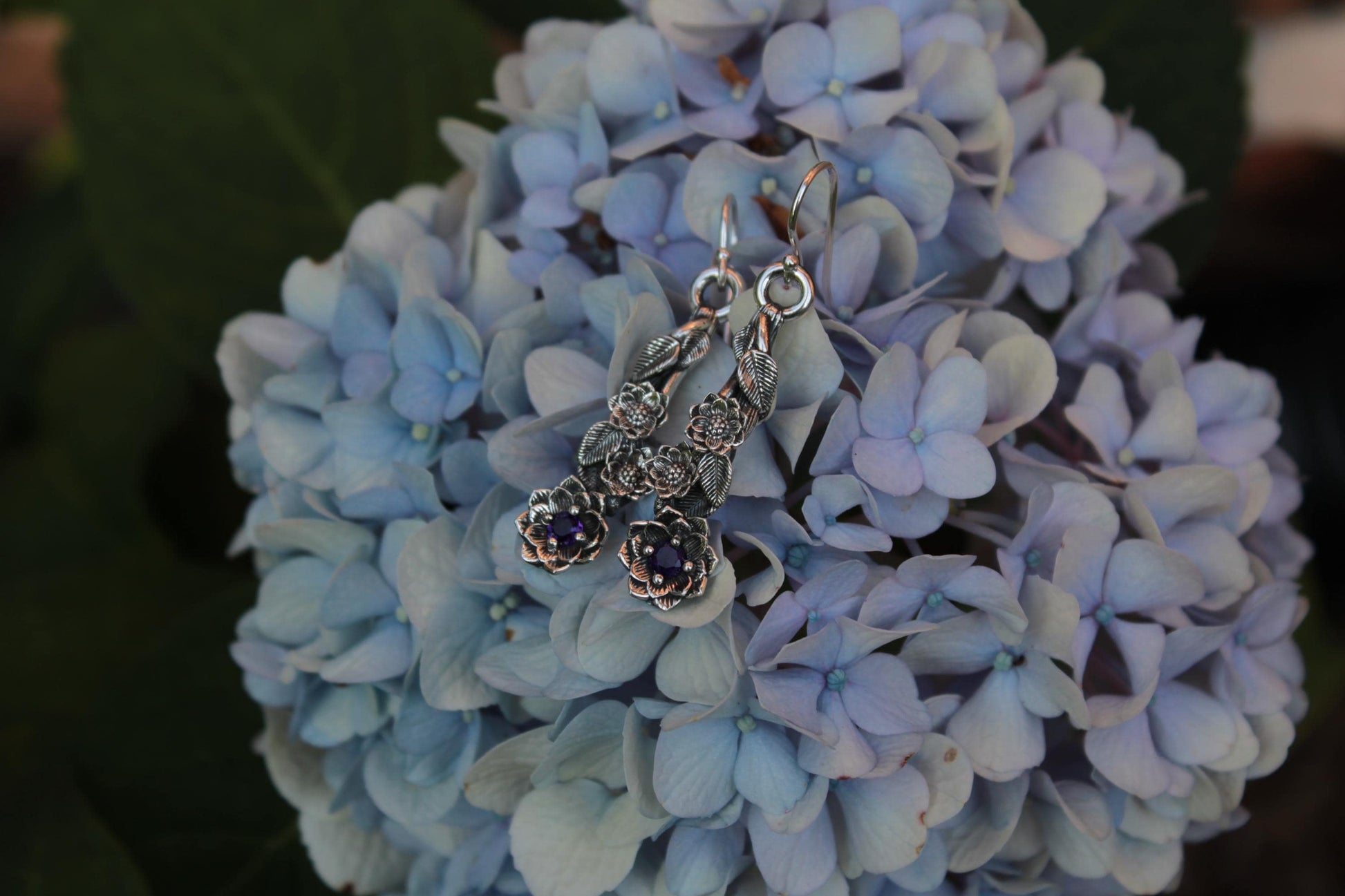 Each pair is handmade with care, beginning as a digitally sculpted model and brought into the physical world through the ancient art of lost wax casting. After casting, every earring is hand-finished with love—polished, oxidized for depth, and set with genuine amethyst stones.