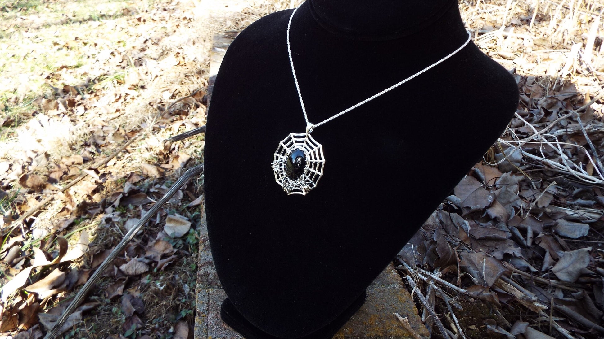 Introducing a truly unique piece of jewelry - our Sterling Silver Spider Pendant with Black Onyx Stone! This one-of-a-kind pendant features a sleek spider design, intricately crafted from high-quality sterling silver. This unique piece showcases the intricate details of a spider's web and the mysterious allure of the black onyx stone. With its delicate details and stunning contrast, this pendant is perfect for those who appreciate bold and unconventional accessories. Ideal for any occasion, this Sterling Silver Spider Pendant with Black Onyx Stone is sure to catch the eye and spark conversations. Add a touch of edge and sophistication to your wardrobe today!