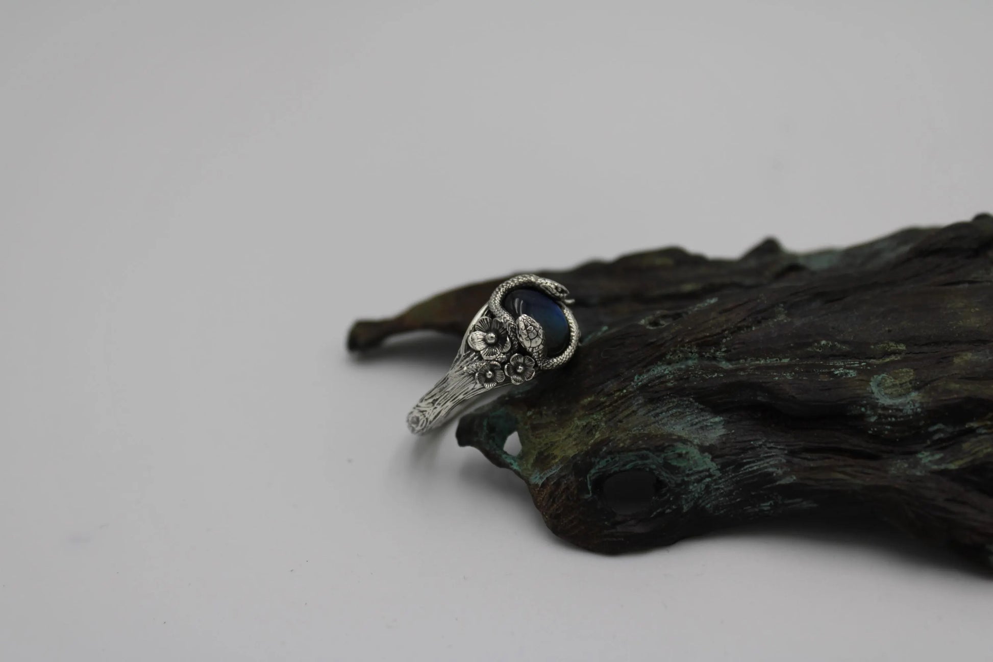 Snake & Bloom Ring – Labradorite Serpent Ring